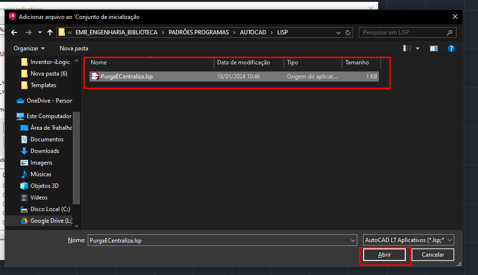 Ao abrir a pasta, selecione o arquivo Lisp que deseja e clique em Abrir, como mostra a Imagem 05.