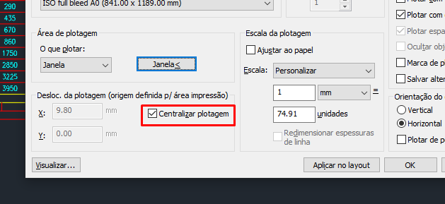 A opção de Centralizar plotagem precisa estar selecionada. Observe a Imagem 12.