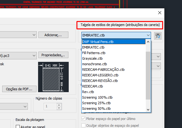 Na opção Tabela Estilos de Plotagem (Imagem 14) é possível selecionar como deseja.