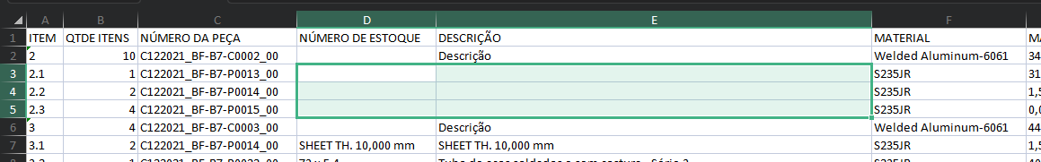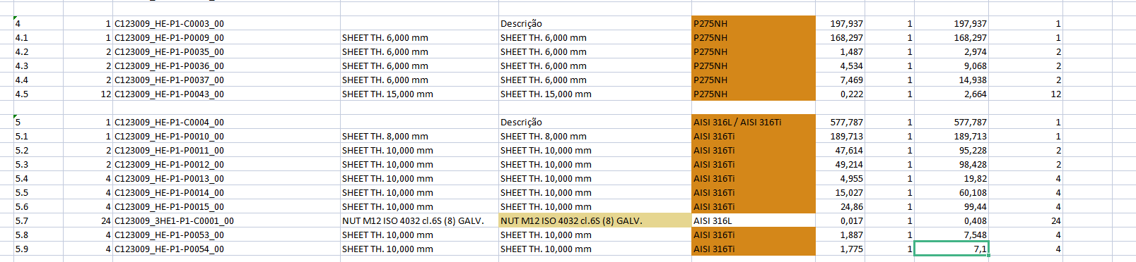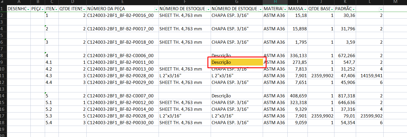Depende de cada caso. Ćs vezes, trata-se apenas de um erro de modelo, como um redondo laminado que nĆ£o teve o material de estoque atribuĆdo. Em outros casos, sĆ£o conjuntos de peƧas inseridas dentro de outras conjuntos de peƧas, o que pode exigir a modificação de toda a planilha.