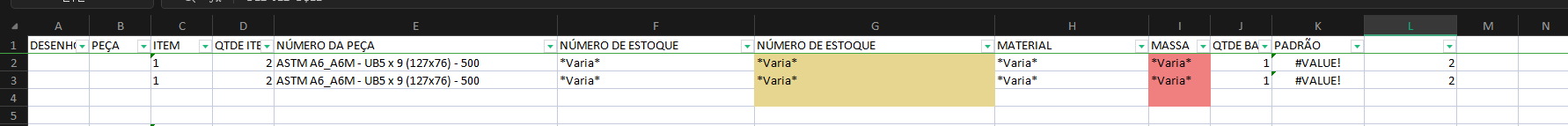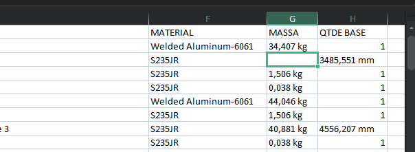 Isso ocorre quando na coluna da MASSA aparece com cƩlula em branco, como demonstrado na Imagem 04.