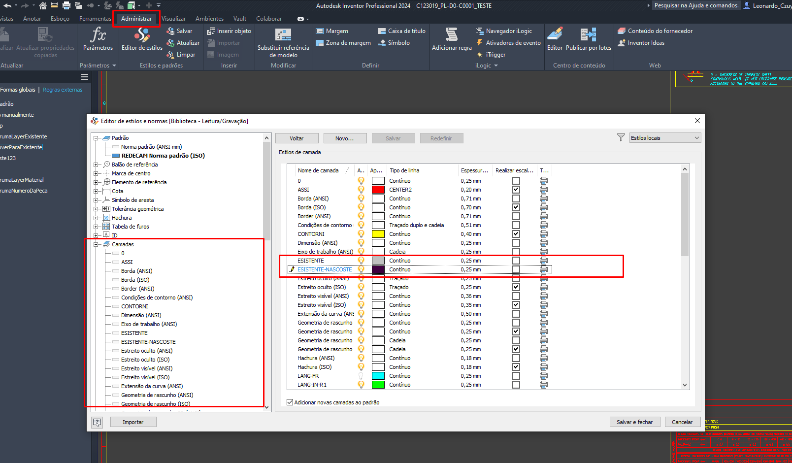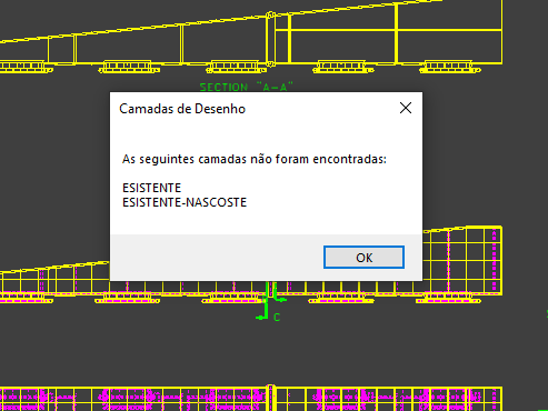 Caso apareça uma mensagem de erro, será necessário acessar a aba Administrar, opção Camadas, e adicionar as camadas ESISTENTE e ESISTENTE-NASCOSTE, como demonstrado nas Imagens 04 e 05.