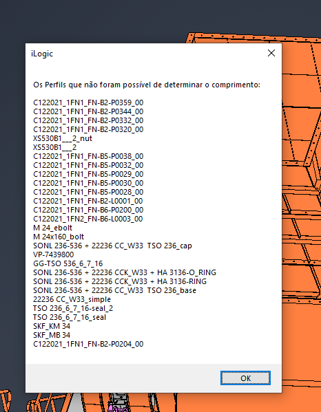 Caso apareça a mensagem Perfis cujo comprimento não foi possível determinar, como na Imagem 02, esses itens serão considerados com comprimento de 0 mm e o cálculo deverá ser ajustado manualmente na planilha.