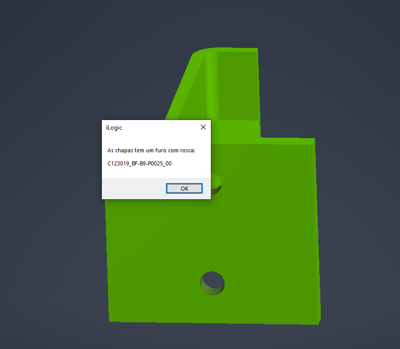 Se receber uma mensagem sobre furos com rosca, como na Imagem 03, será necessário abrir o arquivo DXF mencionado para verificar e remover esses furos.