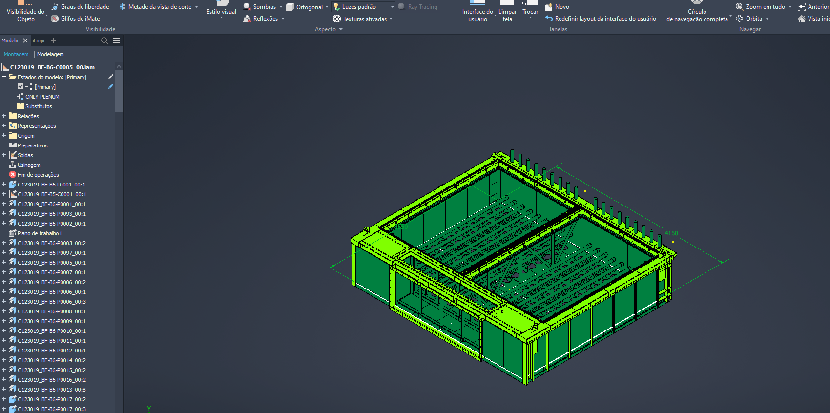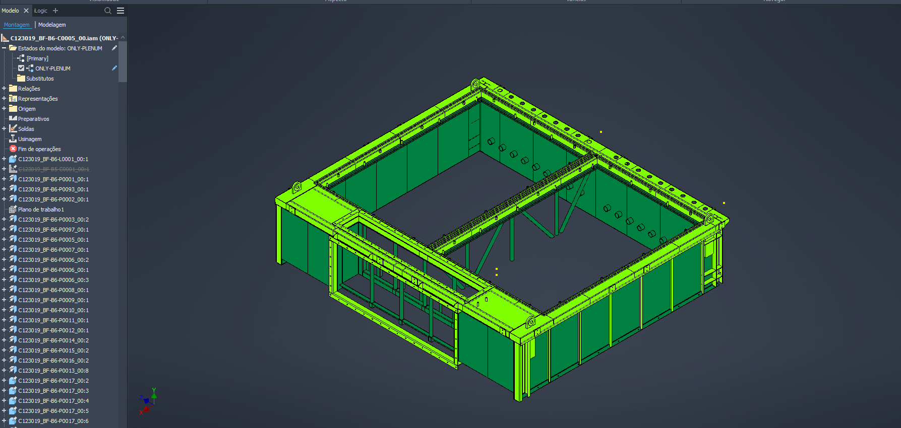O recurso "Model State" possibilita o salvamento de diversos estados do modelo sem afetar a versão principal. Um exemplo prático disso é observado no Plenum, em que a chapa espelho é incluída no modelo, mas pode ser suprimida permitindo a extração da lista de material sem considerar a chapa espelho.