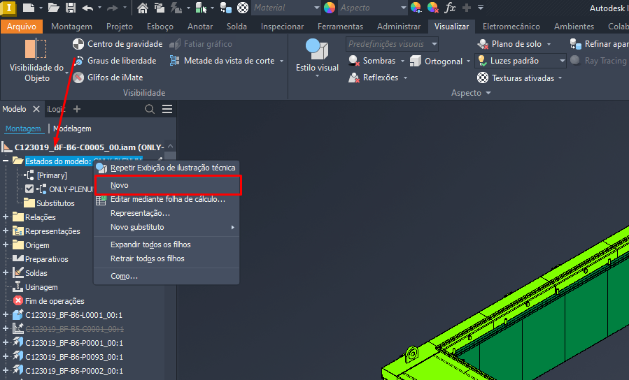 Para criar um Estado de Modelo, crie com botão direito do mouse e clique em novo, como mostra a Imagem 03.